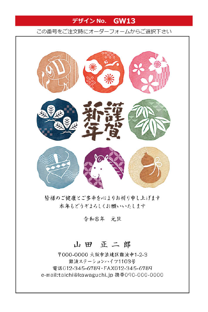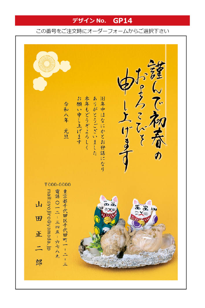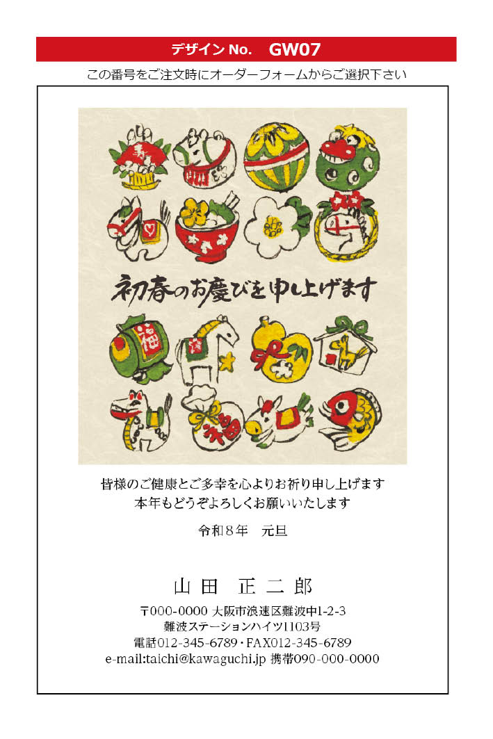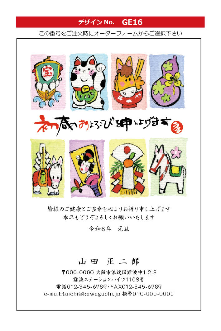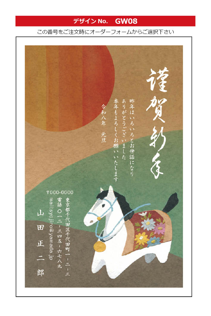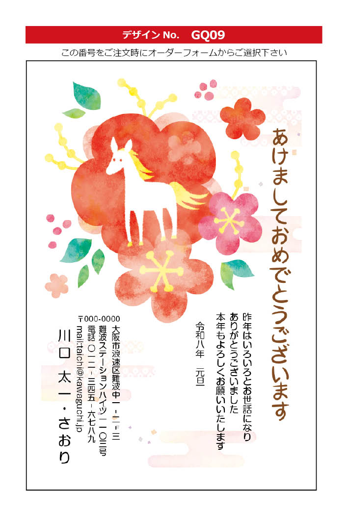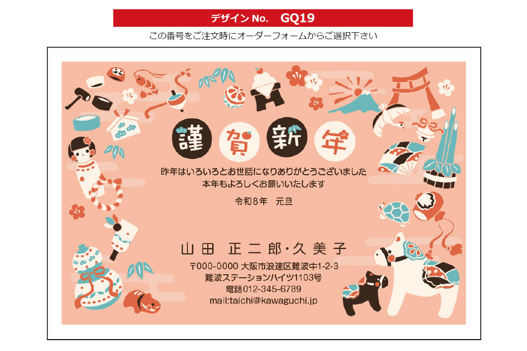 筆文字(GB) スタンダード(GS) デザイナーズ(GD) 縁起物(GE) 絵文字(GA) 絵手紙風(GT) 和風(GW) 会社向け(GO) モノクローム(GM) カジュアル(GC) キュート(GQ) 立体キャラクター(GP) 写真フレーム(GF) 喪中はがき(GZ) 寒中お見舞い(GZ)