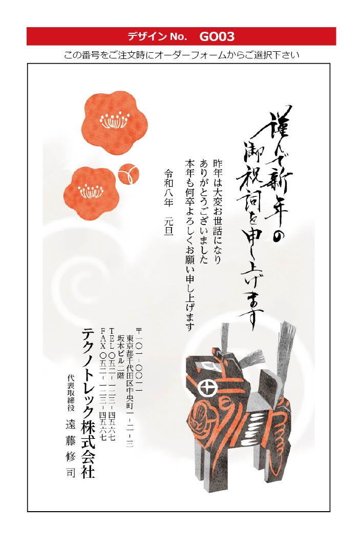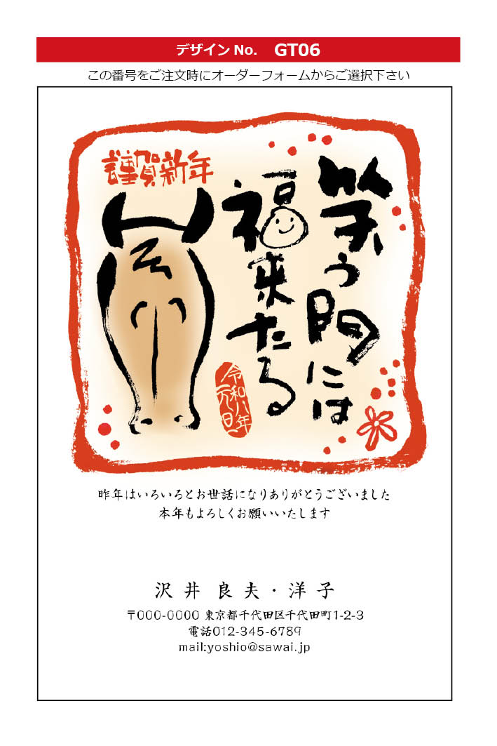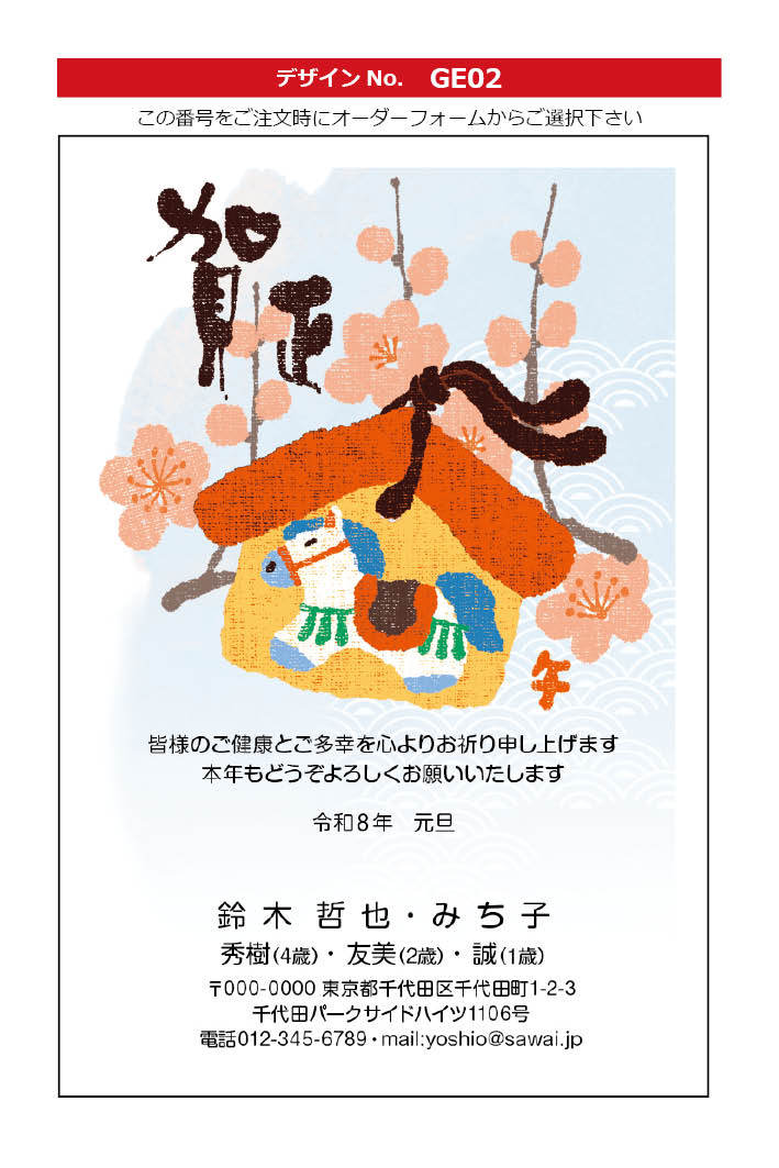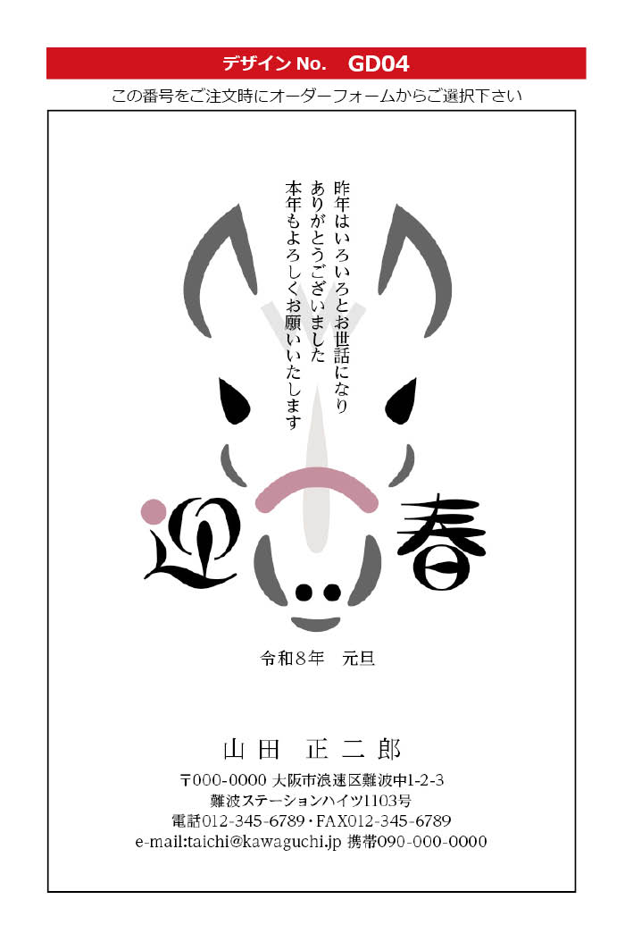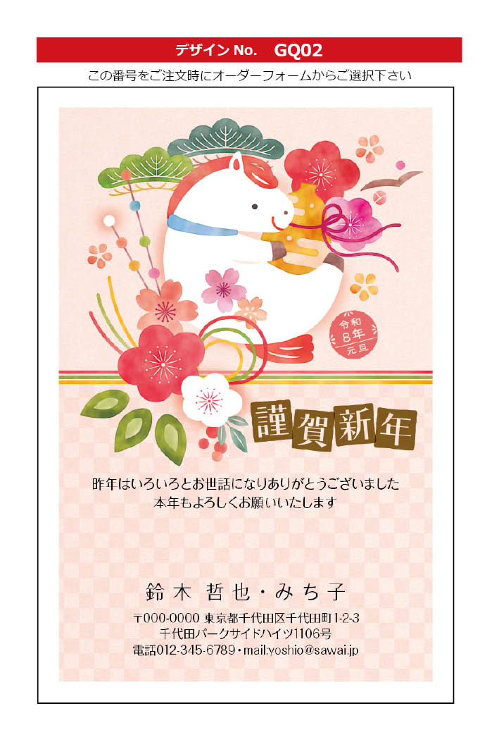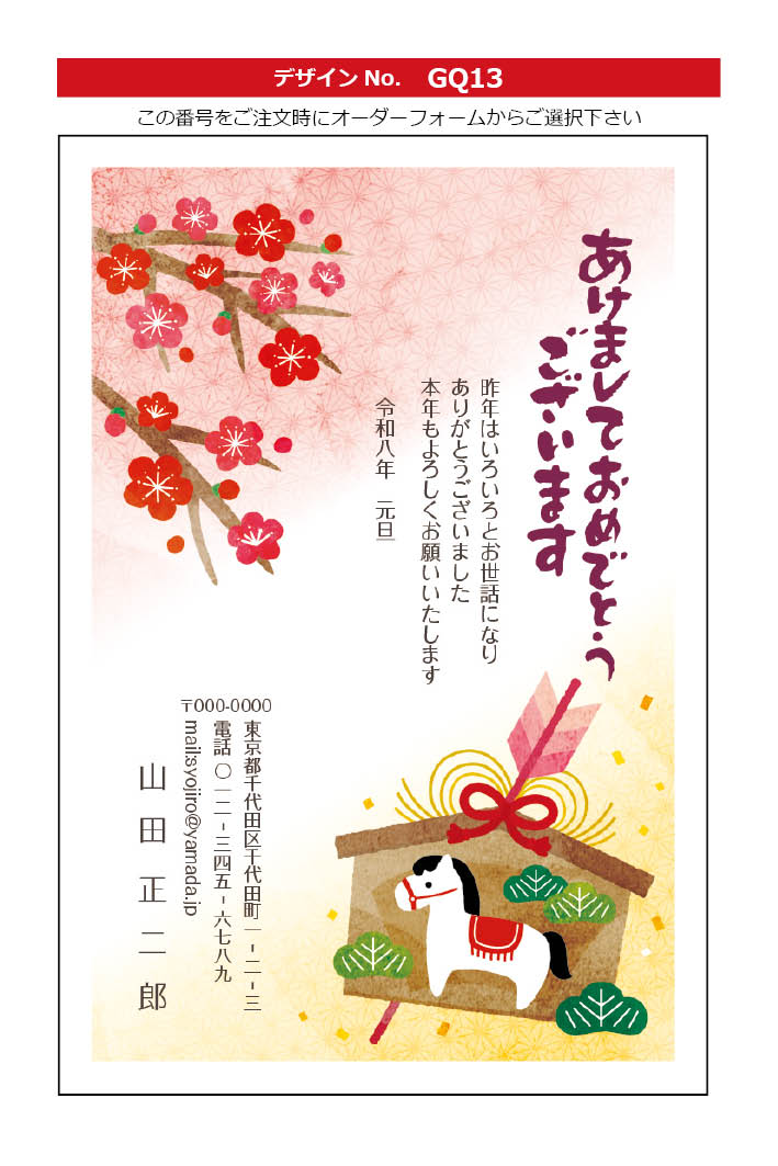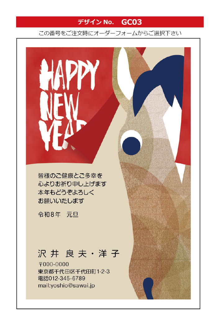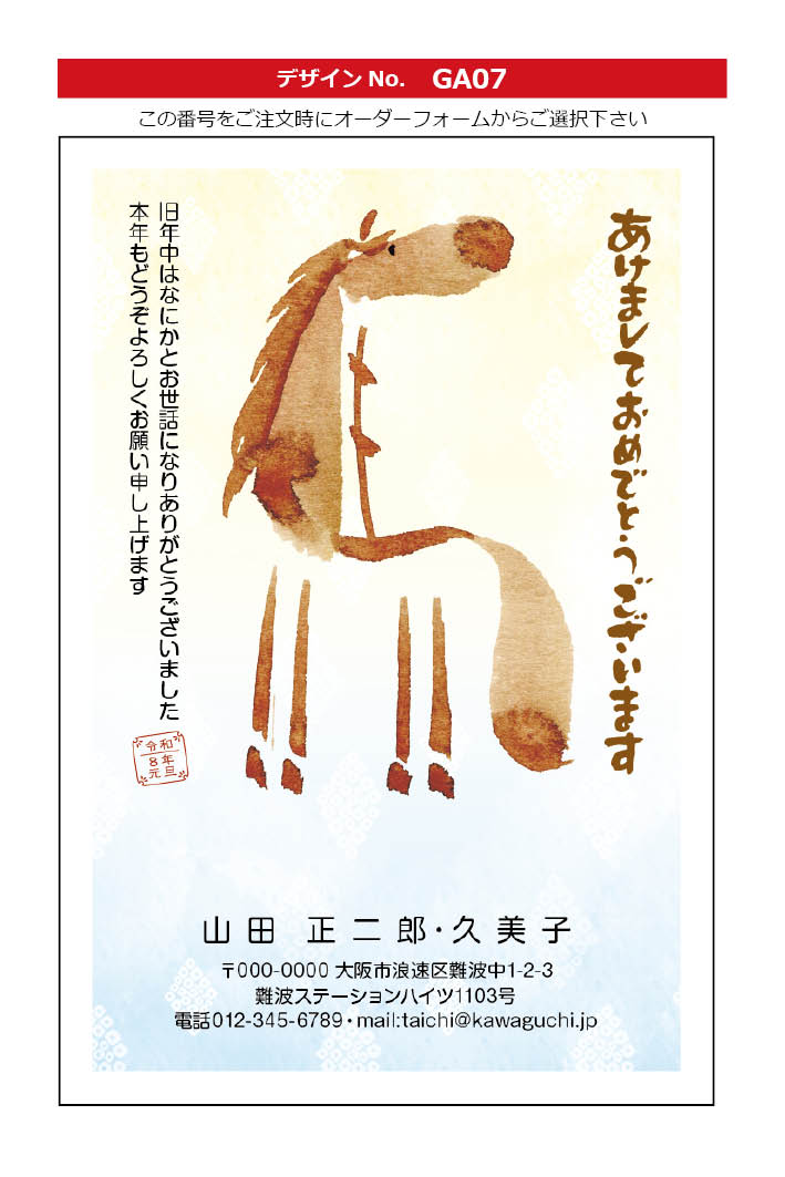 筆文字(GB) スタンダード(GS) デザイナーズ(GD) 縁起物(GE) 絵文字(GA) 絵手紙風(GT) 和風(GW) 会社向け(GO) モノクローム(GM) カジュアル(GC) キュート(GQ) 立体キャラクター(GP) 写真フレーム(GF) 喪中はがき(GZ) 寒中お見舞い(GZ)