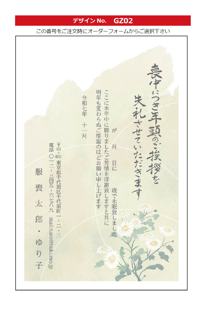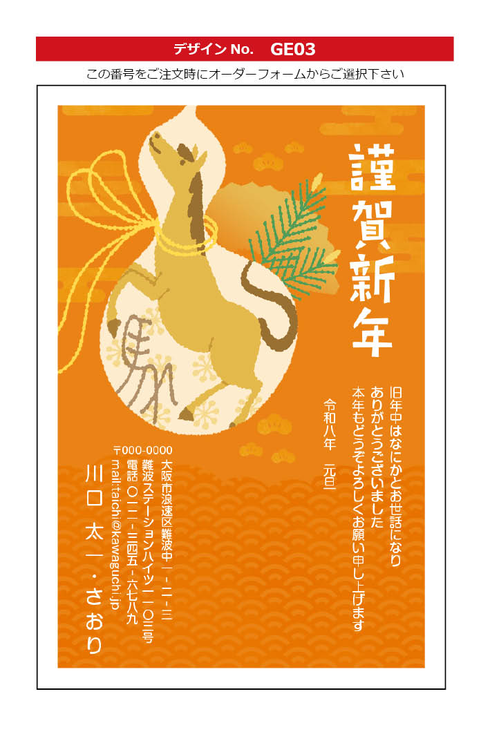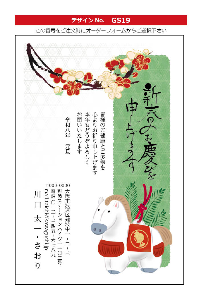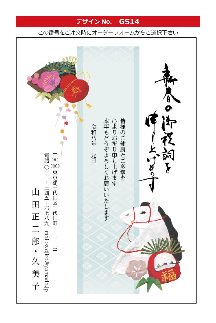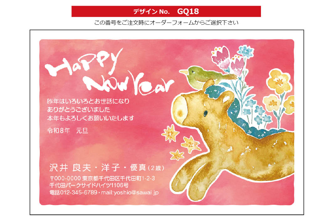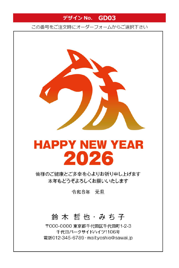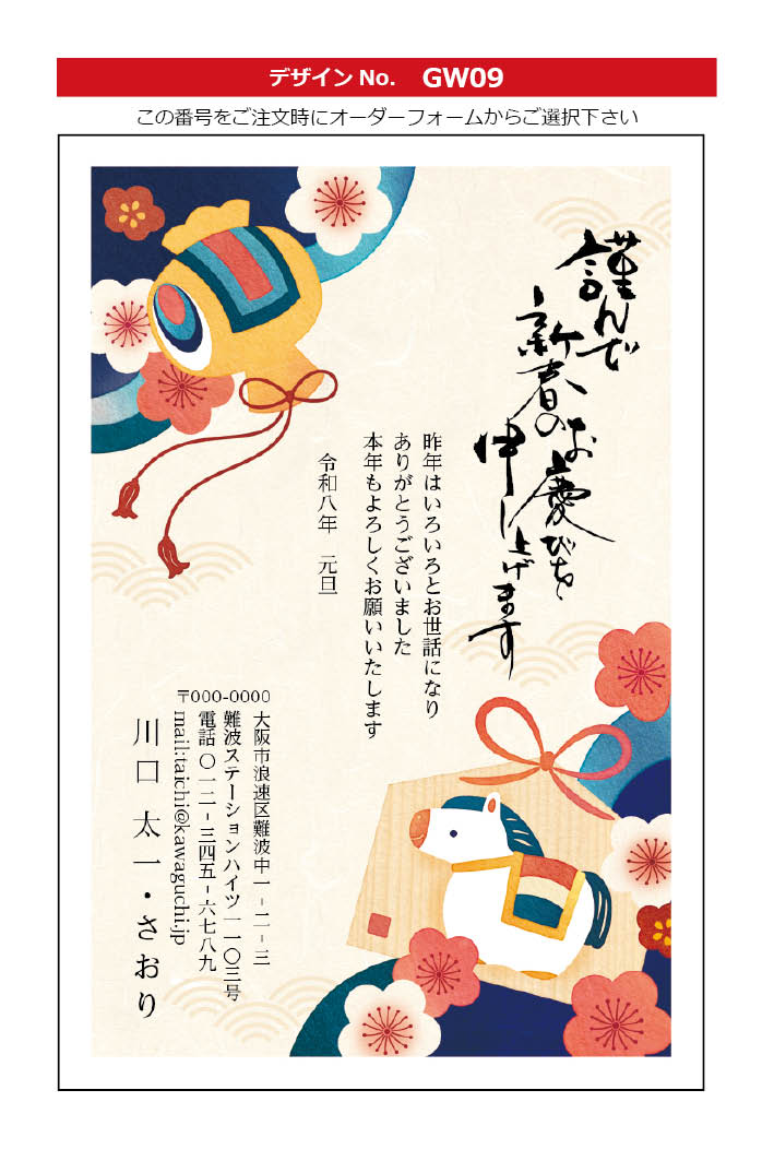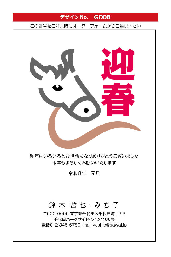 筆文字(GB) スタンダード(GS) デザイナーズ(GD) 縁起物(GE) 絵文字(GA) 絵手紙風(GT) 和風(GW) 会社向け(GO) モノクローム(GM) カジュアル(GC) キュート(GQ) 立体キャラクター(GP) 写真フレーム(GF) 喪中はがき(GZ) 寒中お見舞い(GZ)
