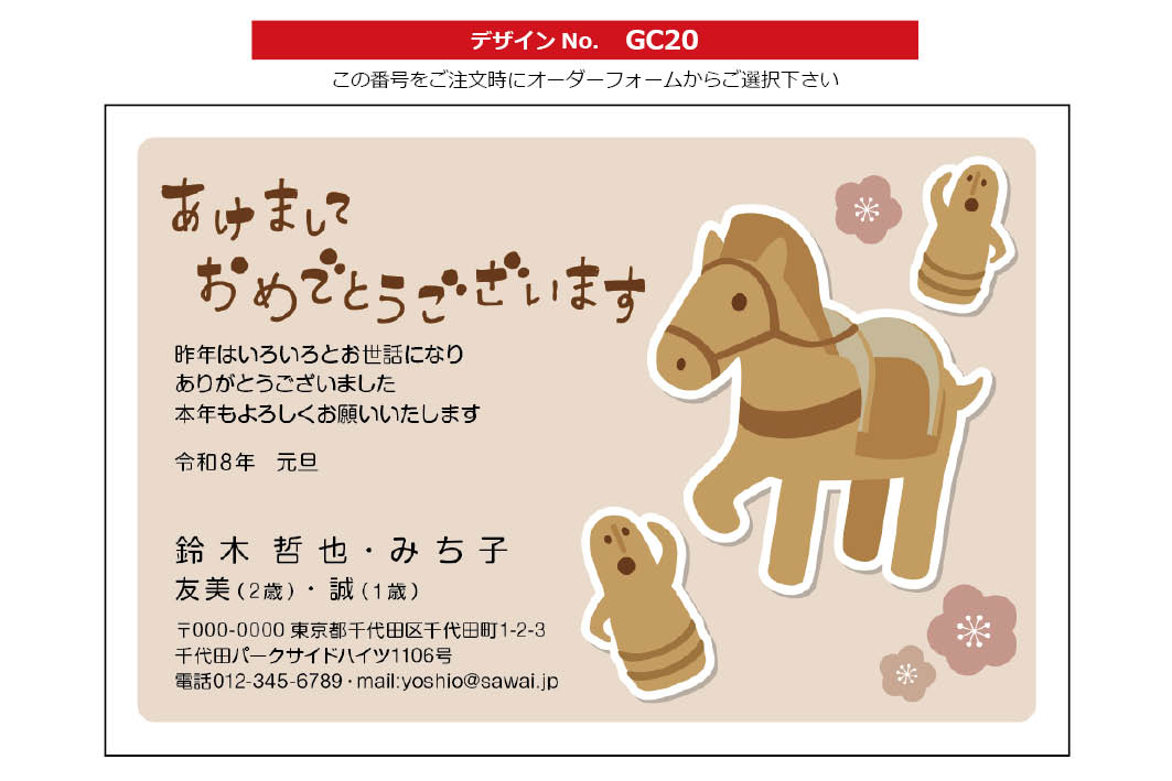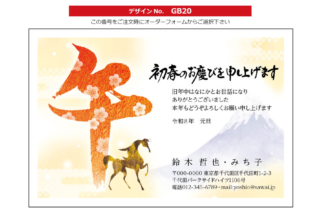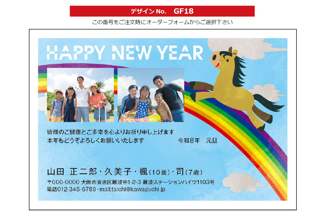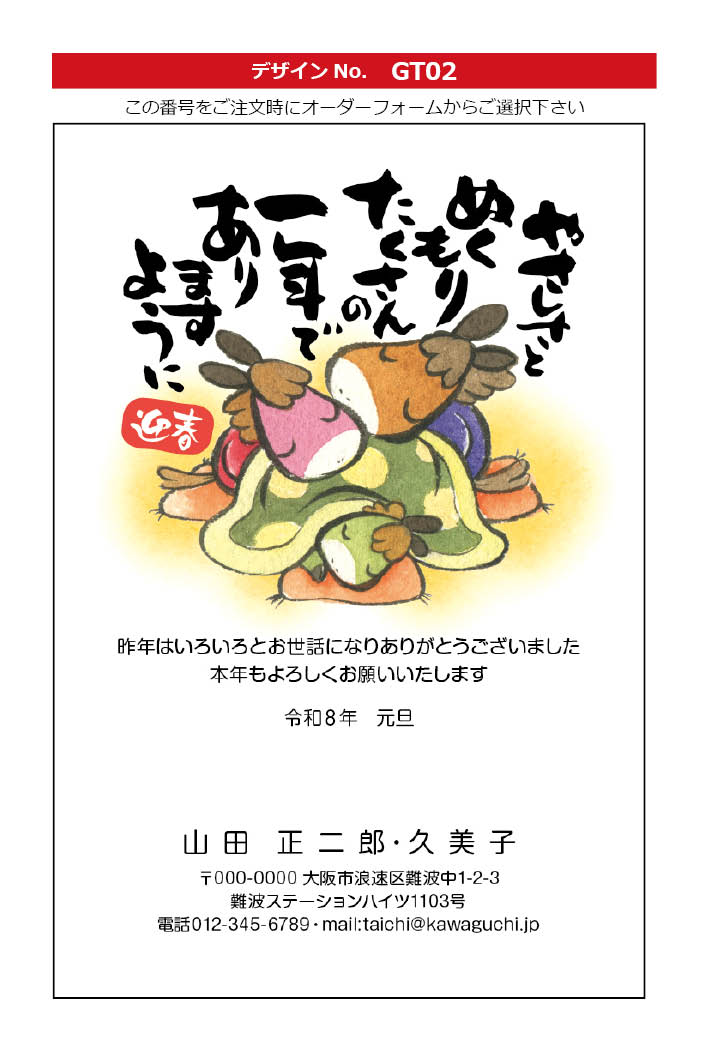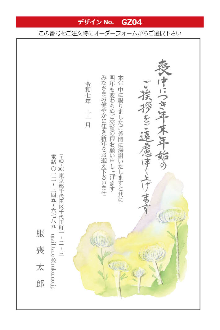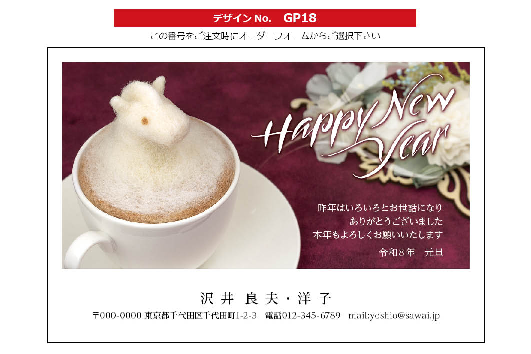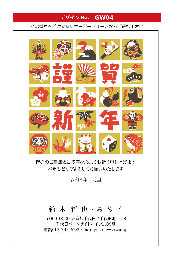 筆文字(GB) スタンダード(GS) デザイナーズ(GD) 縁起物(GE) 絵文字(GA) 絵手紙風(GT) 和風(GW) 会社向け(GO) モノクローム(GM) カジュアル(GC) キュート(GQ) 立体キャラクター(GP) 写真フレーム(GF) 喪中はがき(GZ) 寒中お見舞い(GZ)