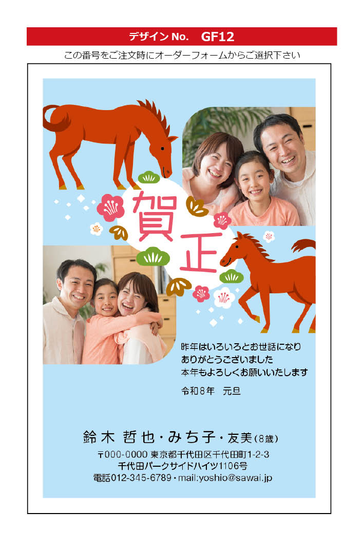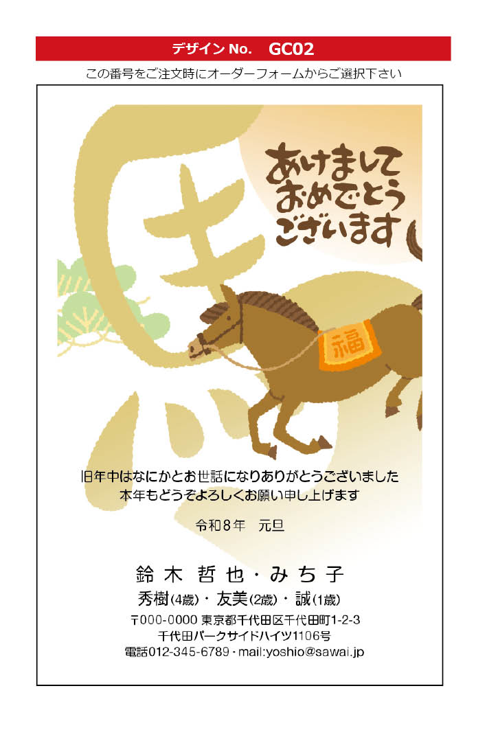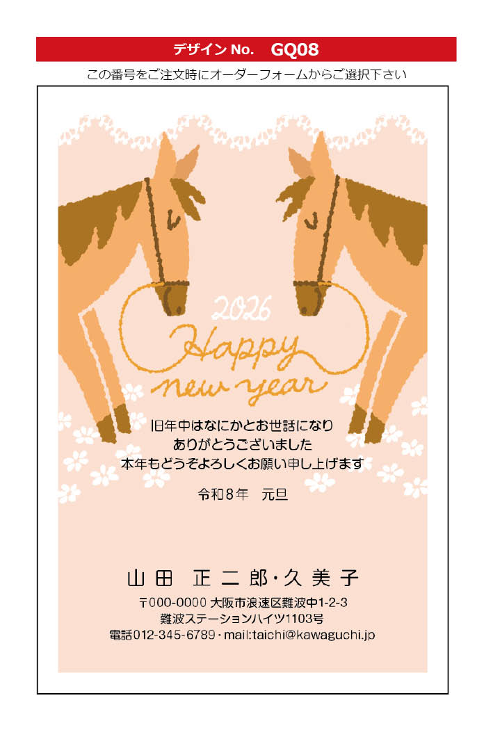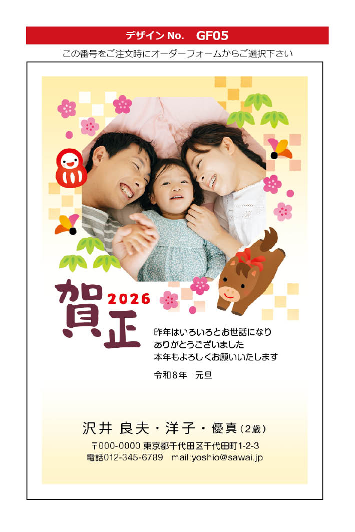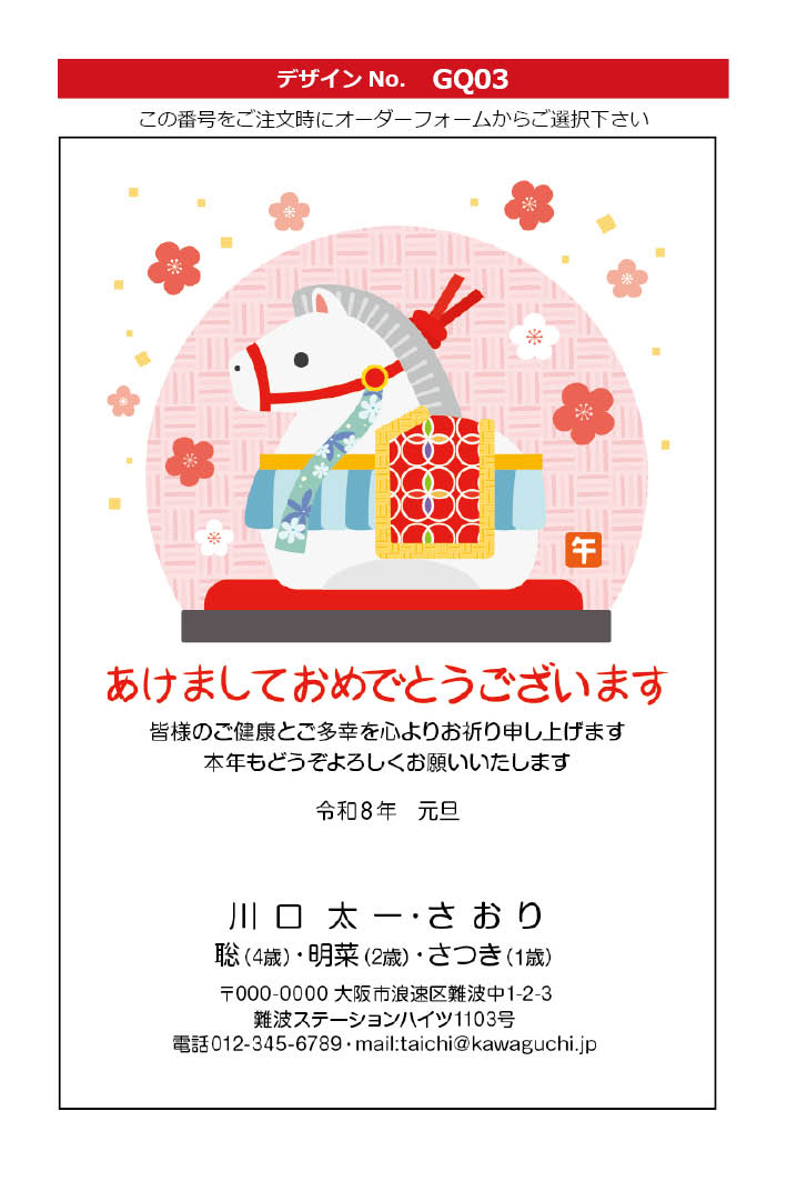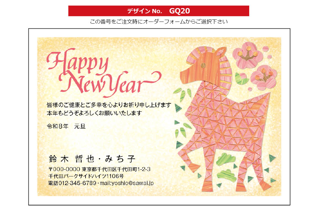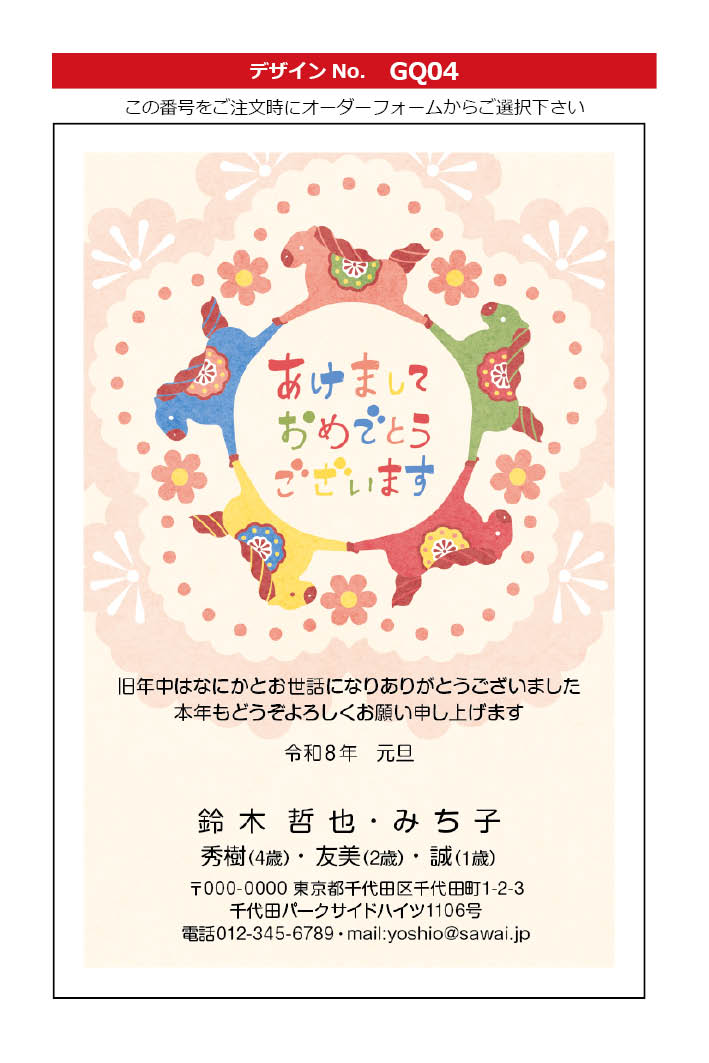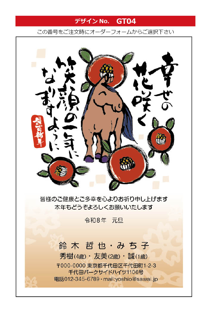 筆文字(GB) スタンダード(GS) デザイナーズ(GD) 縁起物(GE) 絵文字(GA) 絵手紙風(GT) 和風(GW) 会社向け(GO) モノクローム(GM) カジュアル(GC) キュート(GQ) 立体キャラクター(GP) 写真フレーム(GF) 喪中はがき(GZ) 寒中お見舞い(GZ)